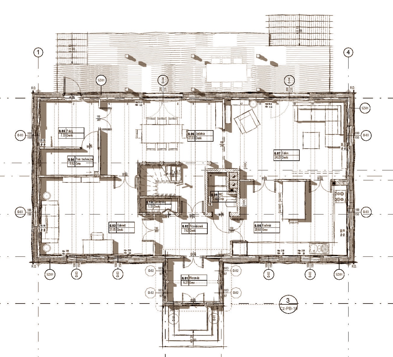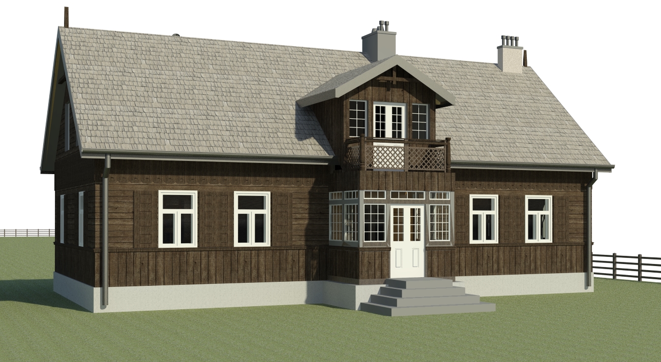 Opracowanie obejmuje przeniesienie tego budynku na wieś pod Konstancinem, montaż na uprzednio przygotowanych fundamentach, wykonanych zgodnie z projektem konstrukcji.