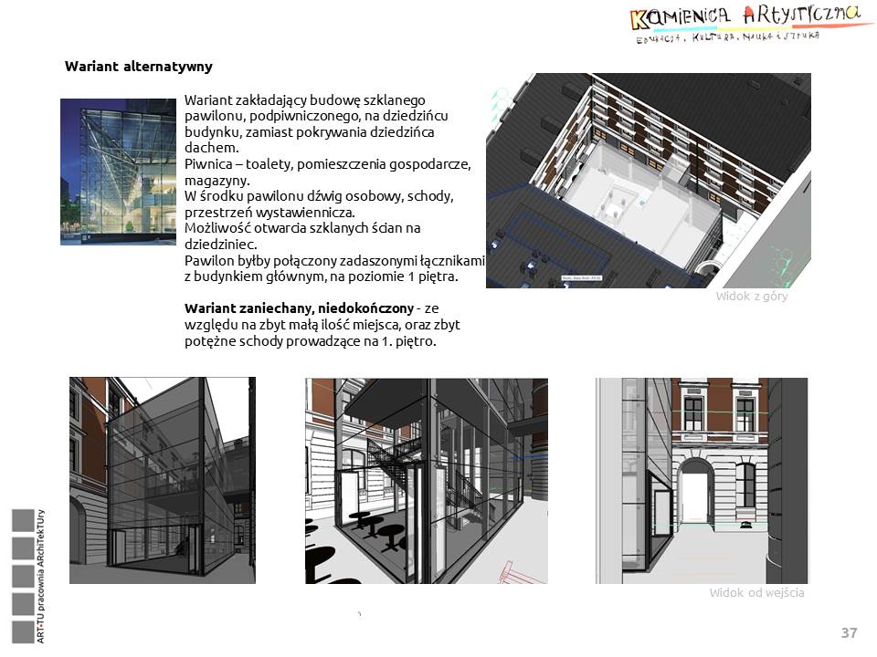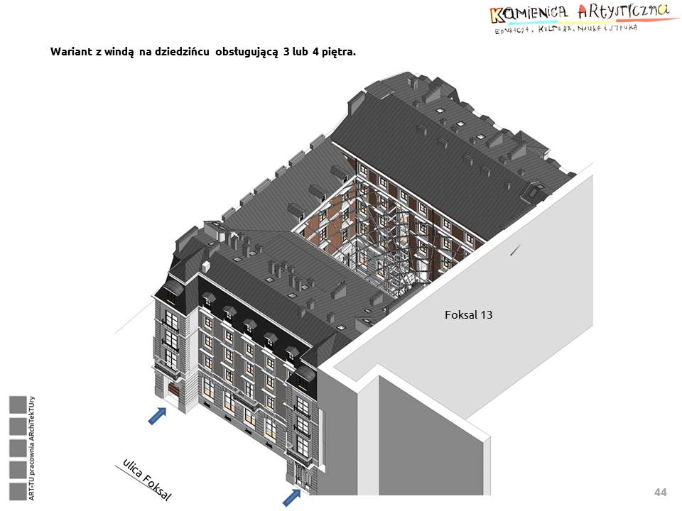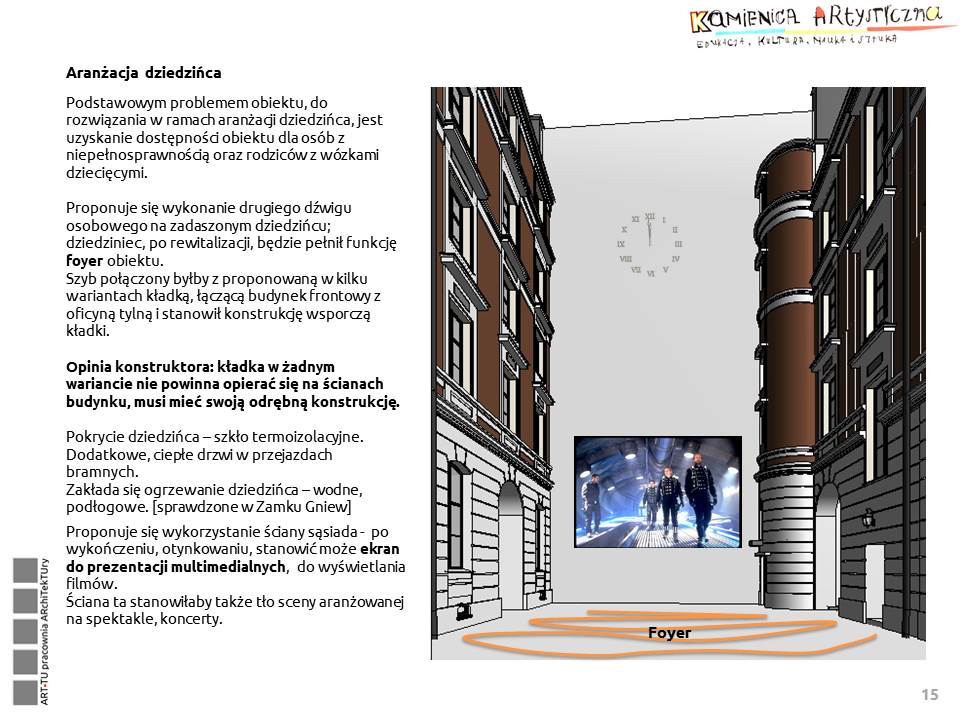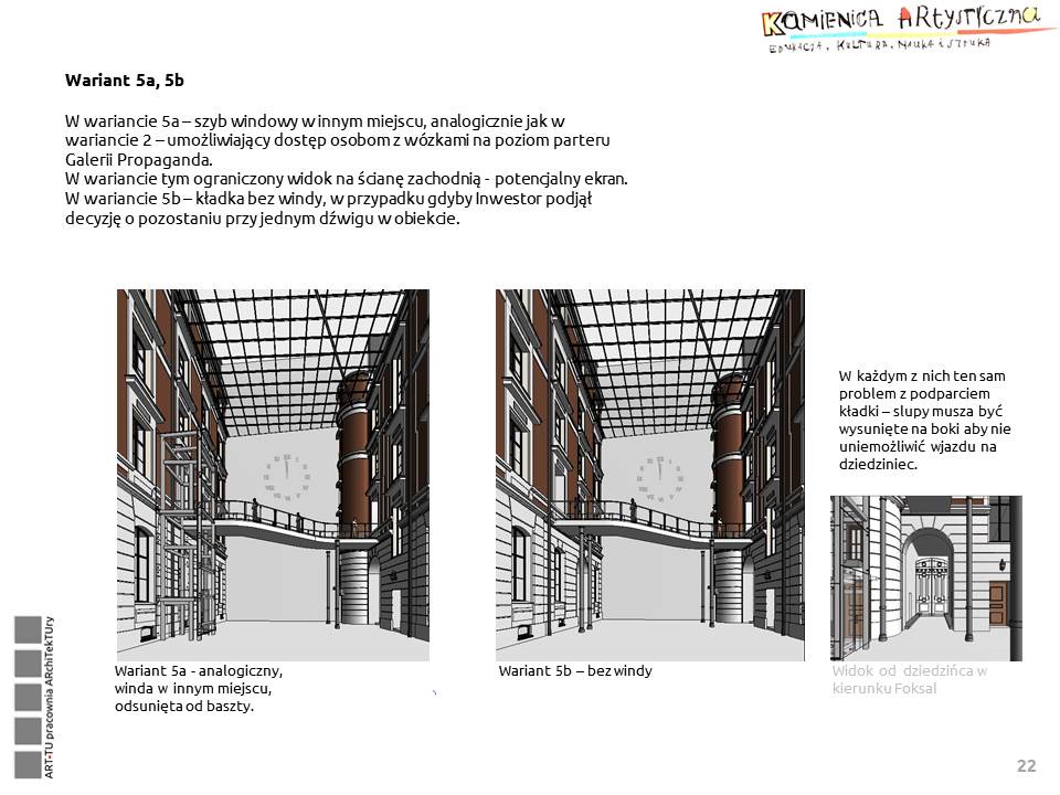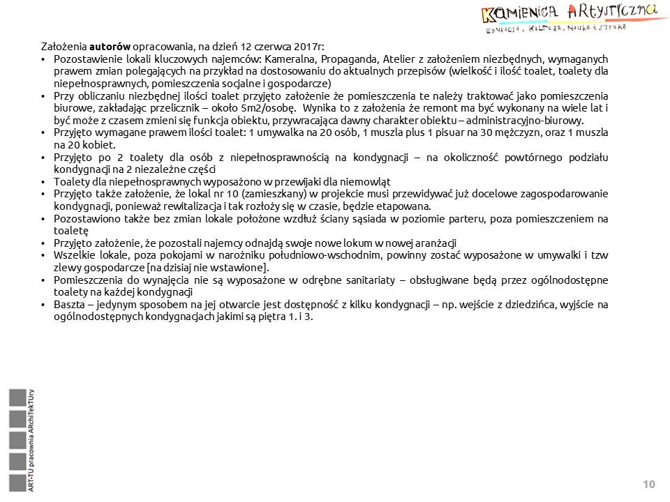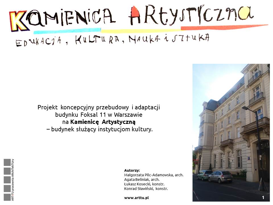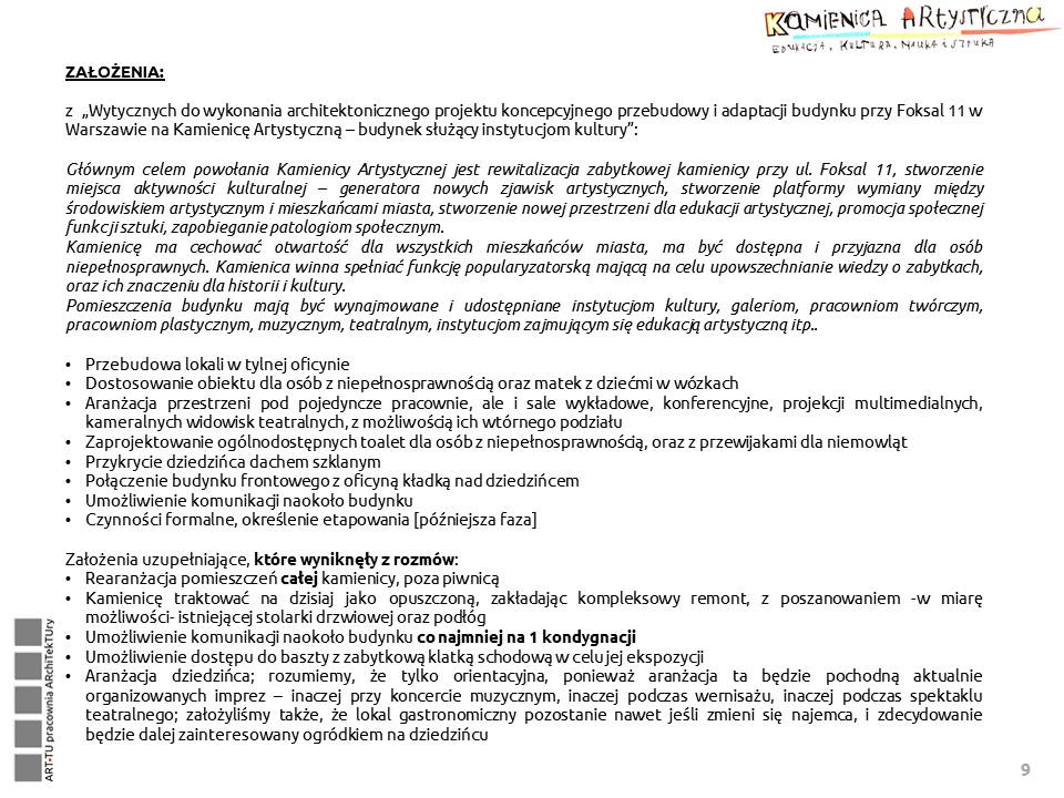 Z „Wytycznych do wykonania architektonicznego projektu koncepcyjnego przebudowy i adaptacji budynku przy Foksal 11 w Warszawie na Kamienicę Artystyczną – budynek służący instytucjom kultury”: