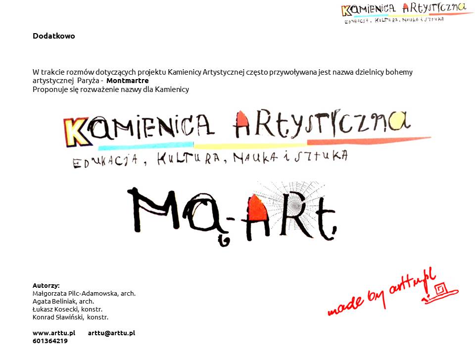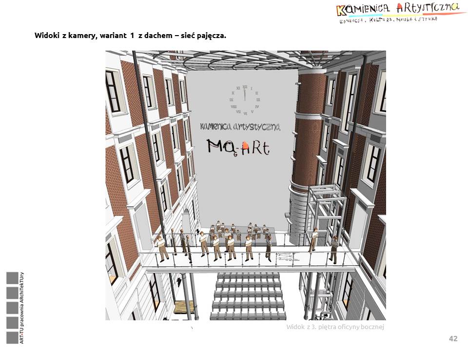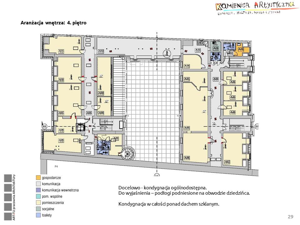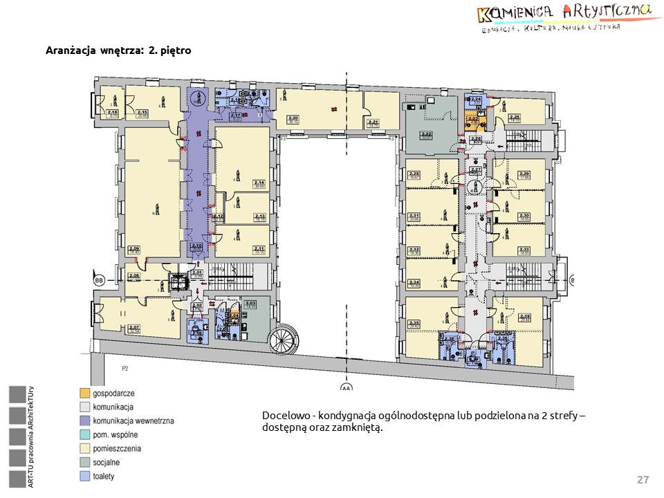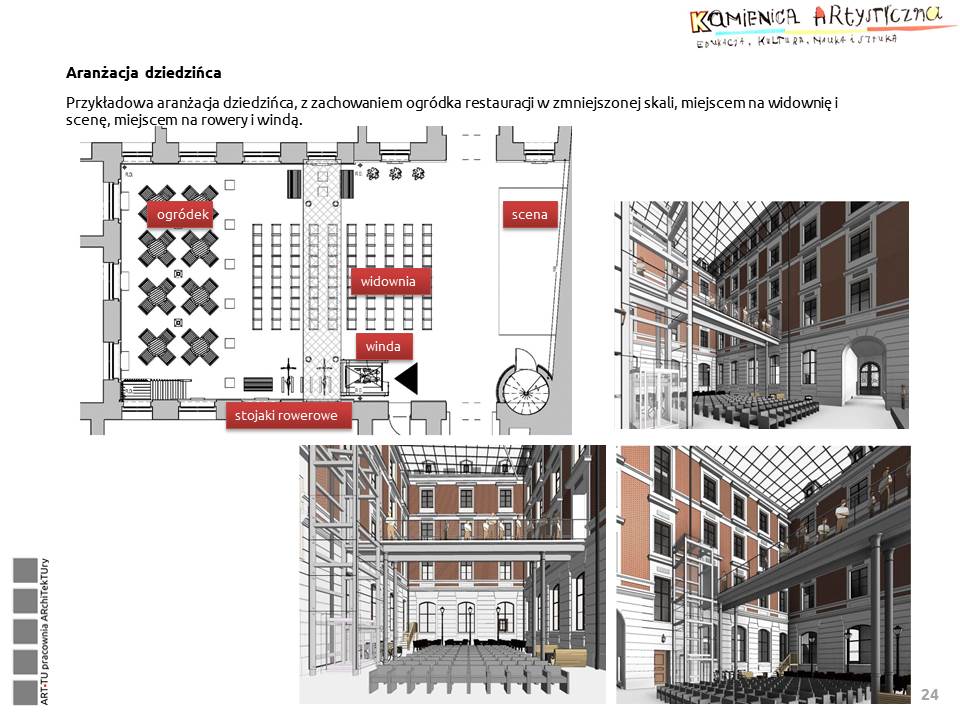 Pomieszczenia budynku mają być wynajmowane i udostępniane instytucjom kultury, galeriom, pracowniom twórczym, pracowniom plastycznym, muzycznym, teatralnym, instytucjom zajmującym się edukacją artystyczną itp.