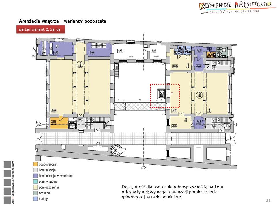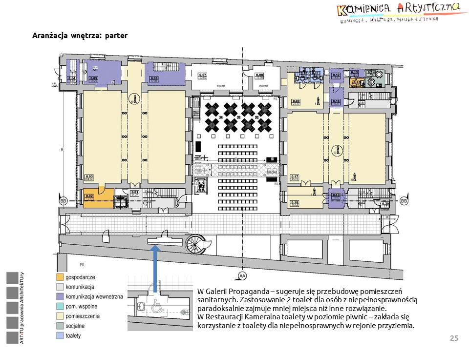 5. Przebudowa pomieszczeń parteru, dostępnych z drugiego przejścia bramnego na toalety dla osób korzystających z dziedzińca