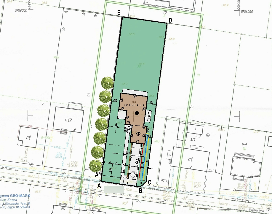 Trudna działka pod Ożrowem. Wymiary - ok 21x78m, z wjazdem od południa i scianą tuj od połudnniowego zachodu.