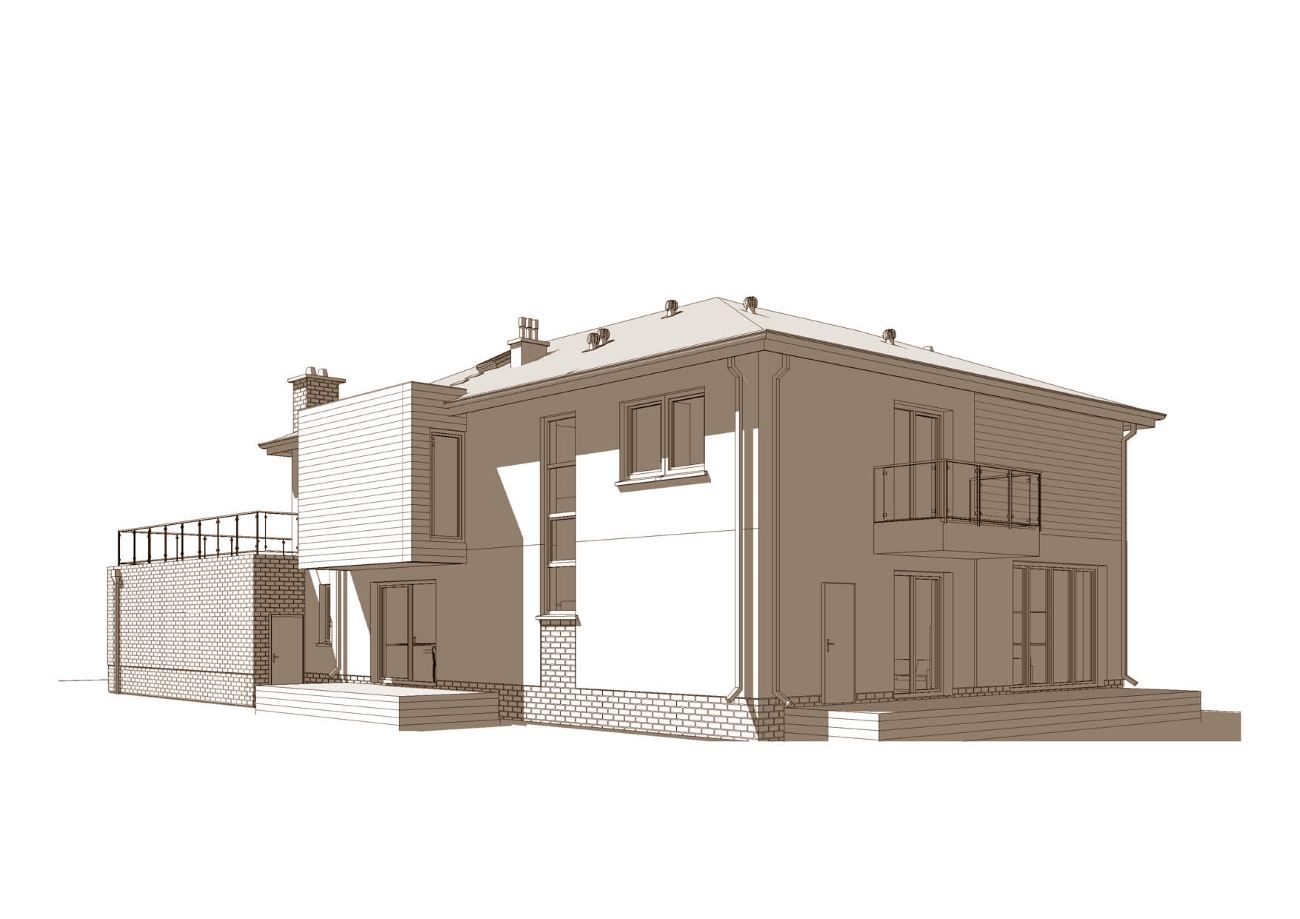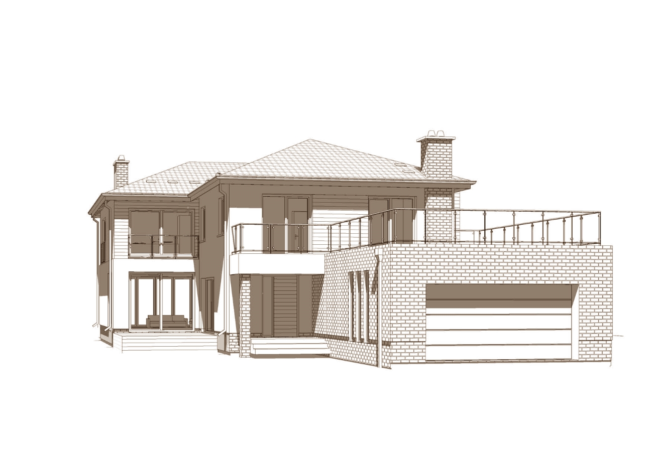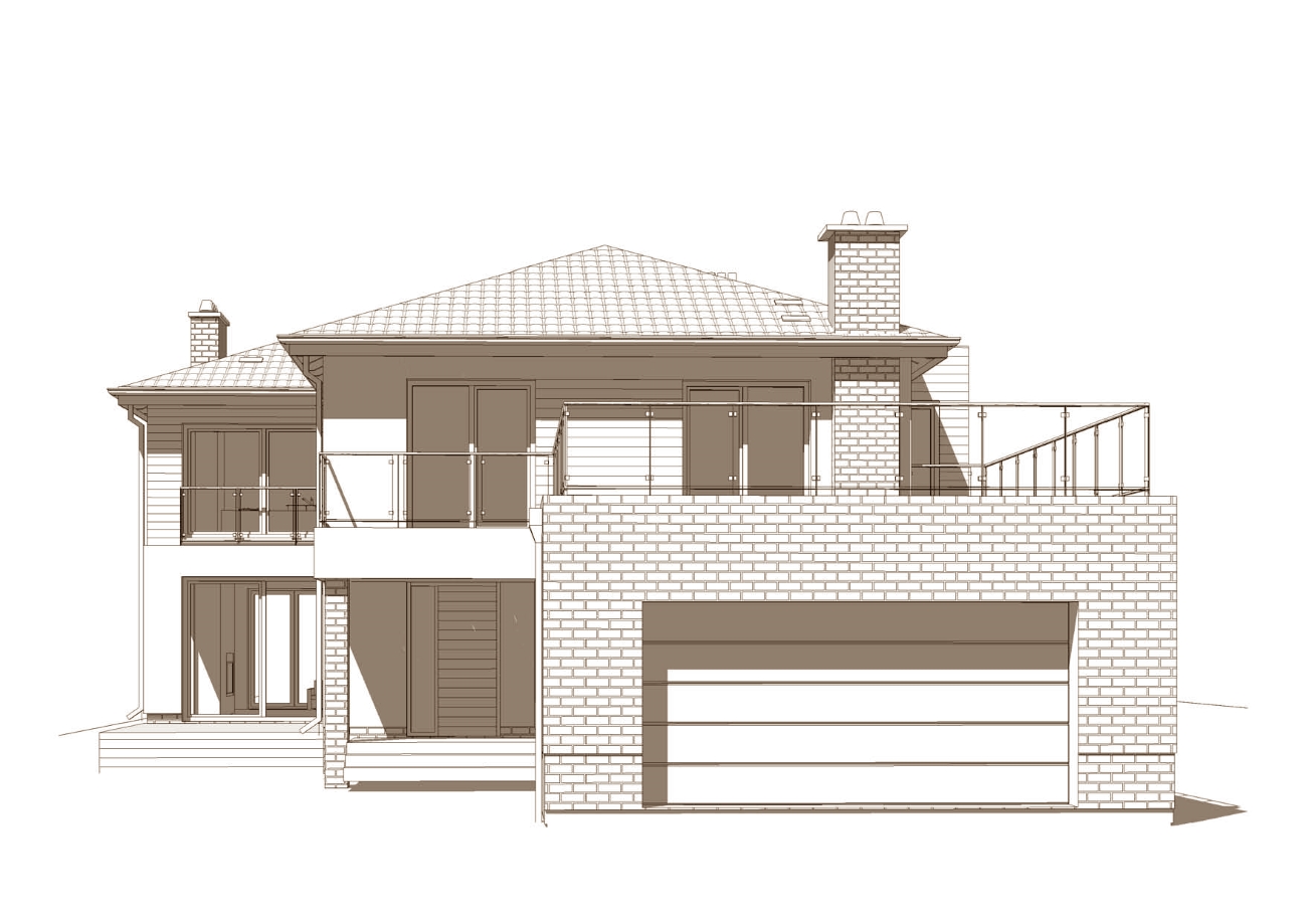 W planie dwukondygnacyjnego domu wyodrębnionych jest kilka stref: strefa wejściowa z  przedsionkiem i szafami, strefa gościnno-domowa z kuchnią, jadalnią, salonem, gabinetem oraz łazienką. Na parterze znajdują się także pomieszczenia gospodarcze. Na piętrze – 3 sypialnie, łazienka, oraz mieszkanko dla Seniorów. Rzut domu został zaprojektowany w taki sposób, aby pomieszczenia były odpowiednio doświetlone, w zależności od swojej funkcji, w sposób uwzgledniający strony świata – wjazd na działkę od południa.